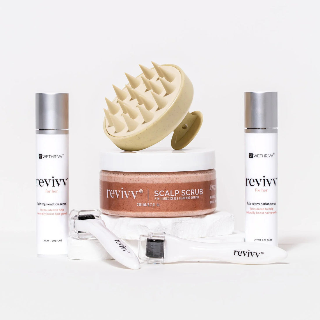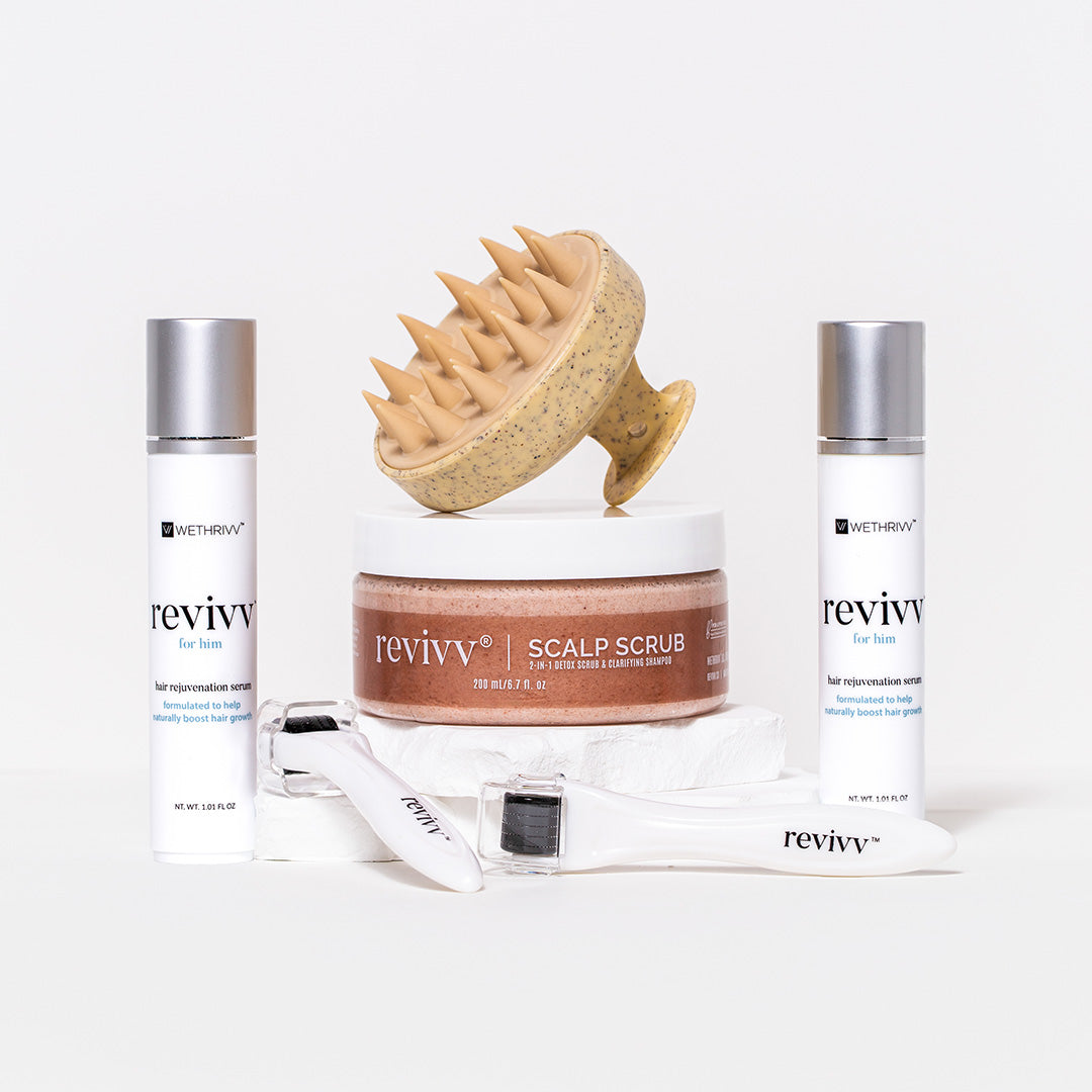 THE FOR HIM AND FOR HER REVIVV KIT IS OUR 3-STEP SOLUTION TO REGAIN CONTROL OF HAIR & SCALP HEALTH.